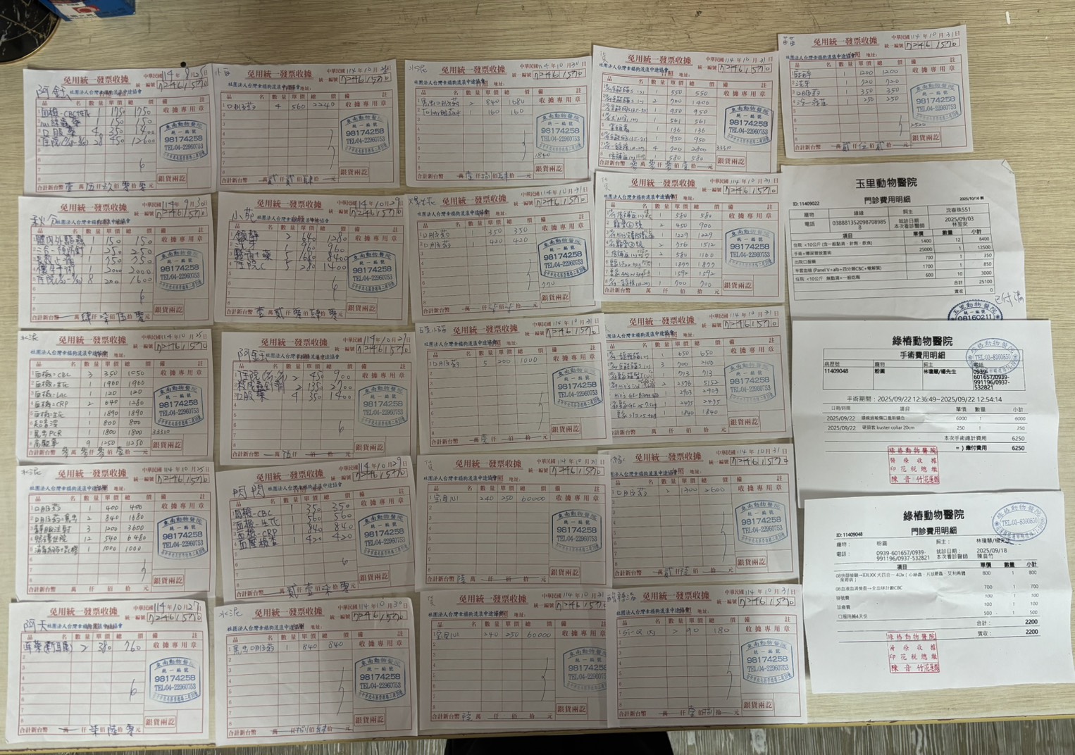 開支明細114年10月協會支出 Posted on 4 11 月, 2025 by 幸福狗 廷廷項目金額動物醫療費410773水電燃料費19106油資25463修繕維護費115667手續費840郵電費4568物流運費114371義賣貨款支出1379303租金75000保險費30240飼料費289140雜項支出123418人事費448499Facebook Comments 幸福狗 廷廷 114年10月捐款名冊