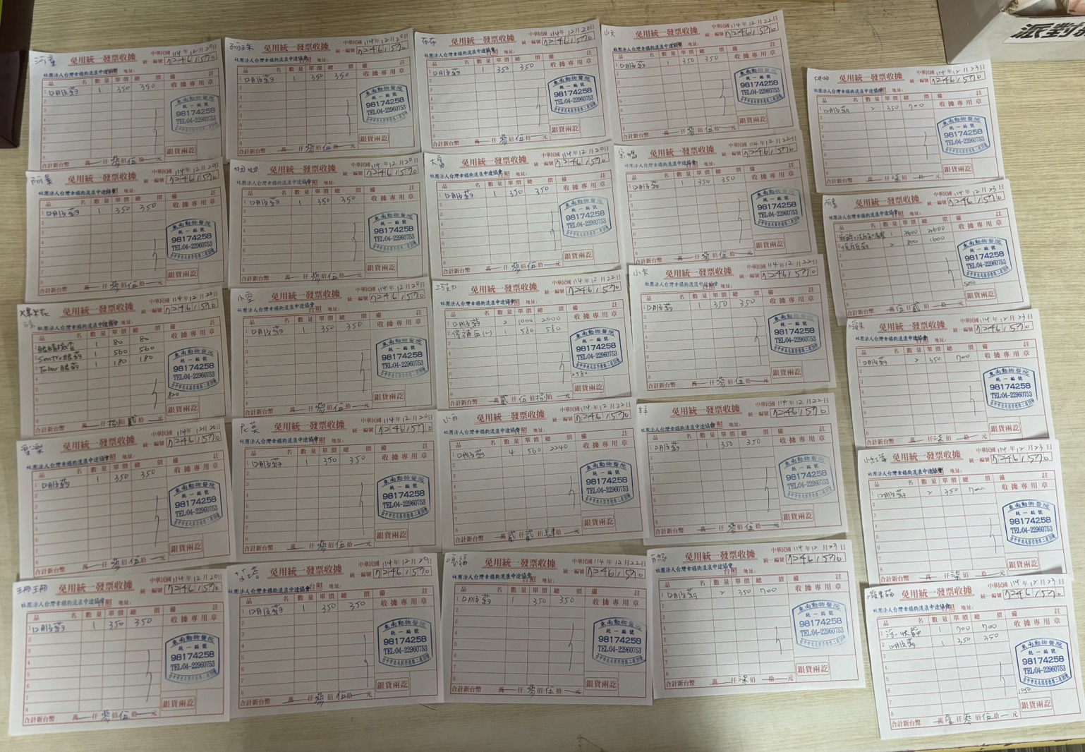 開支明細114年12月協會支出 Posted on 5 1 月, 2026 by 幸福狗 廷廷項目金額動物醫療費338177水電燃料費2152油資15410修繕維護費1518433手續費845物流運費37101義賣貨款支出531134租金75000保險費48303飼料費159290雜項支出149437人事費429340Facebook Comments 幸福狗 廷廷 114年12月捐款名冊湍急河流受困一個多月的”河童”俊美高山犬